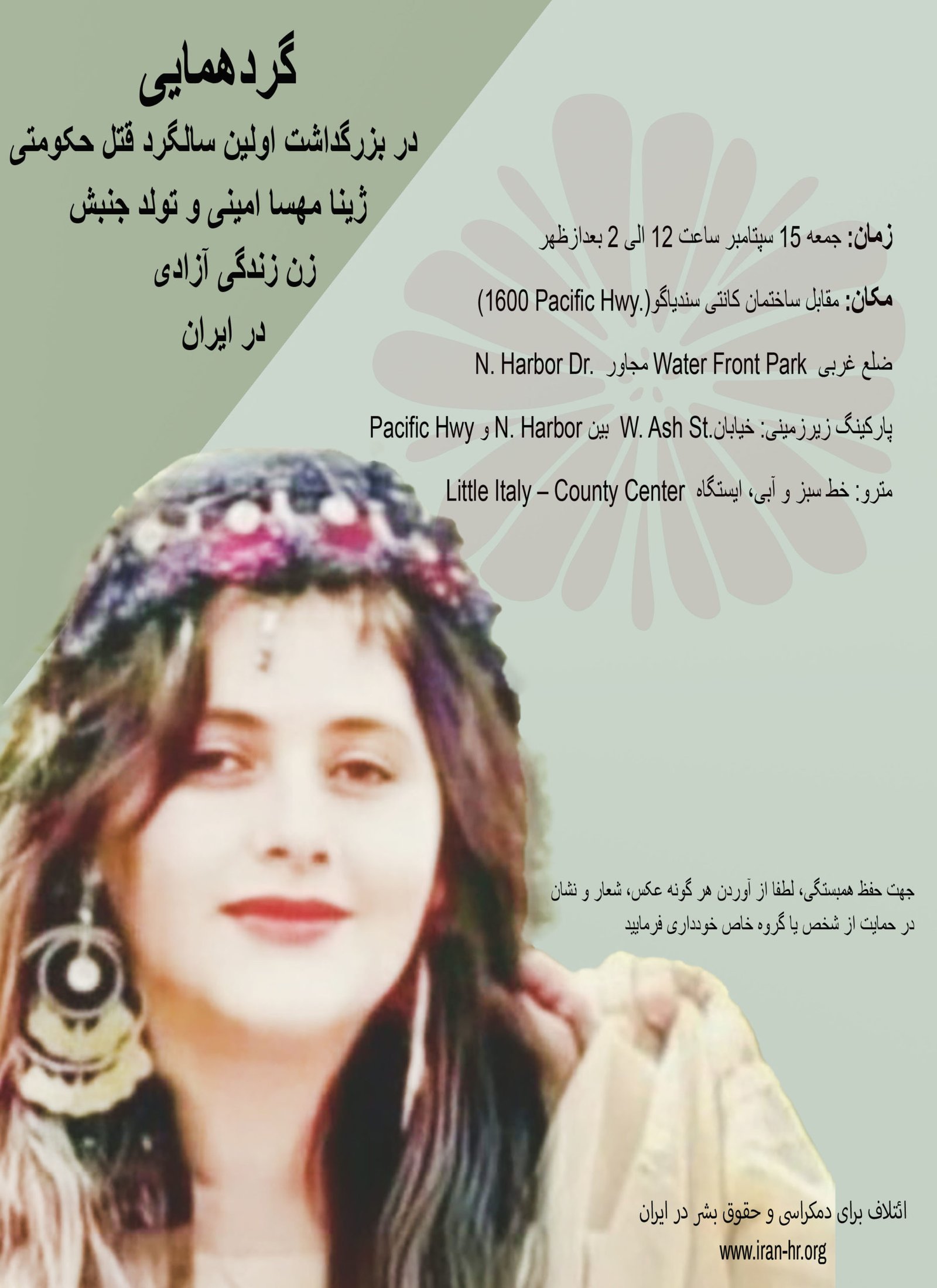 گردهمایی در سالگرد قتل حکومتی ژینا مهسا امینی در سندیاگو August 26, 2023 coalAdmin Coalition Ativities 0